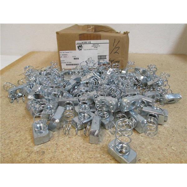This listing is for 100 Thomas & Betts A100 1/2 Regular Spring Nuts w/ Steel Galvanized Zinc Finish