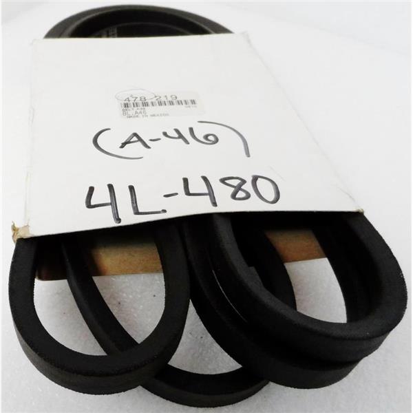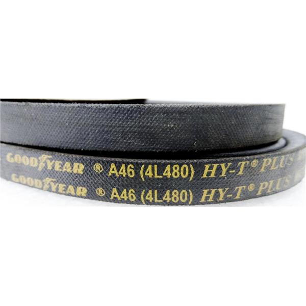 - Description: One Pack of Two Units; Hy-T Plus Series; Goodyear Engineered Products Fractional Horsepower V Belt, Nominal Outside Length 48 Inches, Top Width 1/2 Inch, Belt 4L, 5/16 Inch Thick, Smooth