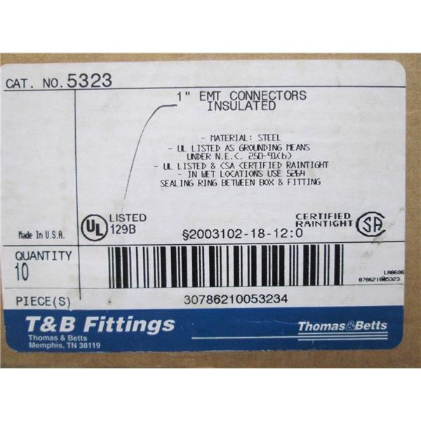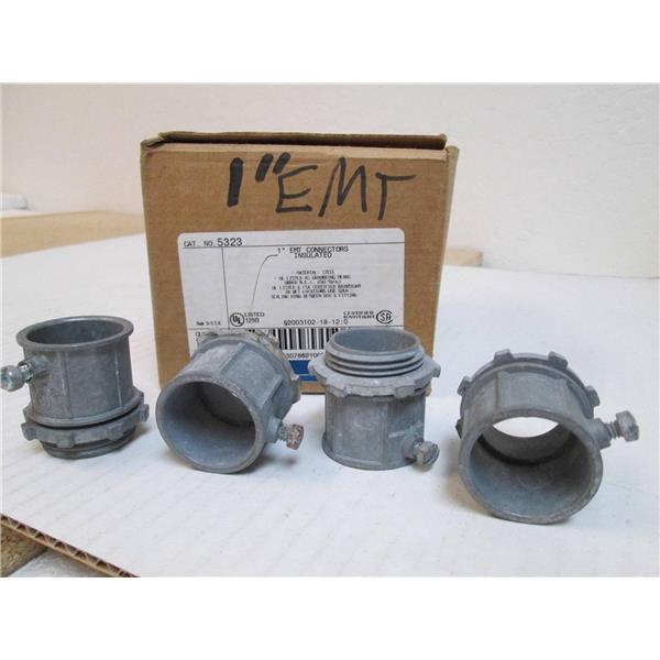 This listing is for 4 (Four) T&B Thomas & Betts 1" Insulated Compression Connector, Steel-Electro Zinc Plated - For use with EMT Conduit