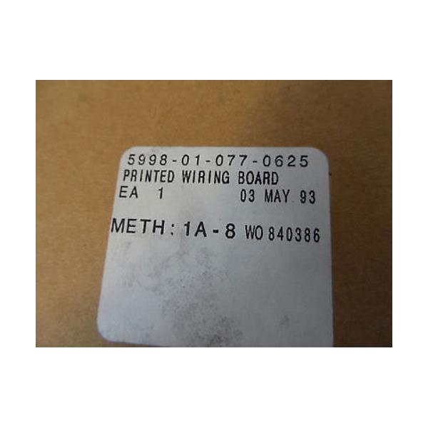 | Condition Description | This item was purchased from an aviation surplus sale. The box has shelf wear but the board is still sealed in the anti-static bag. The box is also labeled "5998-01-077-0625 printed wiring board". There is no condition tag on this item or any indication of the aircraft type. I am not able to test it. |