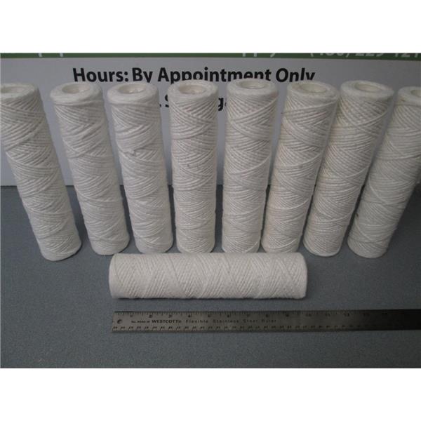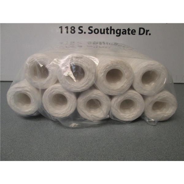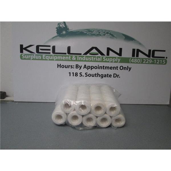 This listing is for a Lot of 9 - Shelco MS101FP5-B-7 / 10" x 2.5" - 5 Micron String Wound Polypropylene Filter Cartridges.