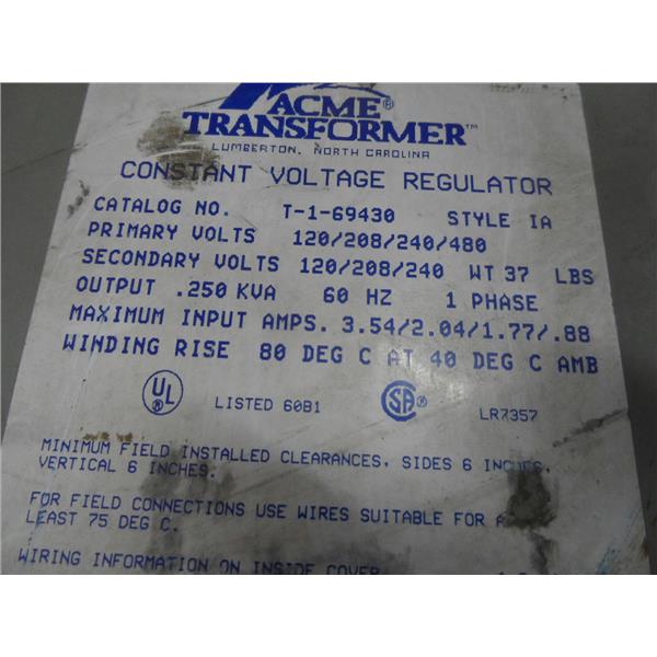 Acme Transformer T-1-69430 Style IA Voltage Regulator