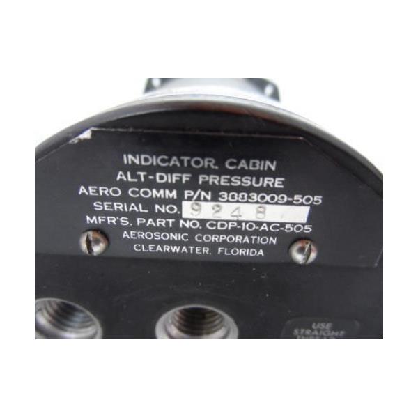 Aerosonic Corp. P/N 3883009-505 Cabin Altimeter Differential Pressure Indicator