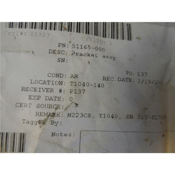 Aircraft Part 51165-000 Bracket Assembly
