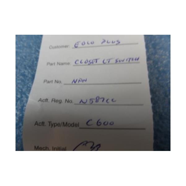 Aircraft Switch Panel Brand & P/N Unknown for Aircraft Type C600 Closet LT Switch