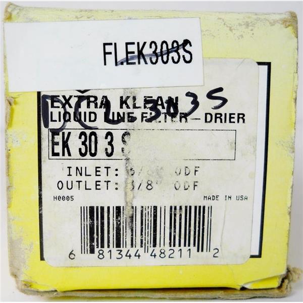 ALCO EK-303S LIQUID LINE FILTER-DRIER, EXTRA-CLEAN, 3/8" ODF INLET/OUTLET, QUARTER INCH - NEW