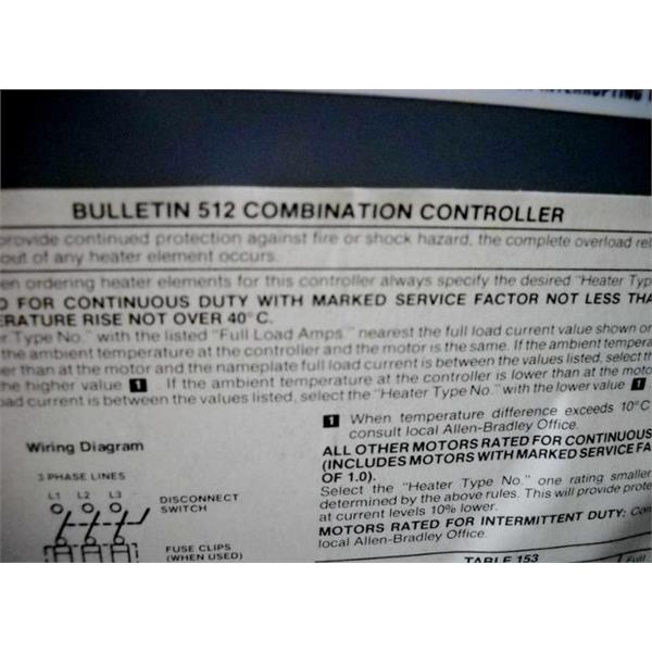 ALLEN BRADLEY 512-BAB-24R COMBINATION STARTER / DISCONNECT SWITCH, MISSING STARTER/CONTACTOR, NEMA SIZE 1, 30A DISCONNECT - USED w/GUARANTEE