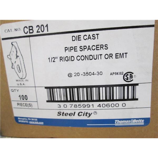 This listing is for a Box of 100 New THOMAS & BETTS CB201 1/2" Pipe Spacer for Rigid/IMC Conduit or EMT Fittings - Die Cast Zinc - **New In Box**