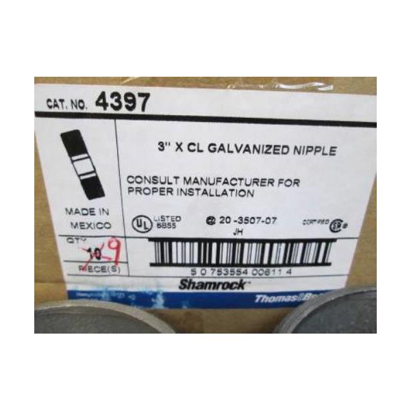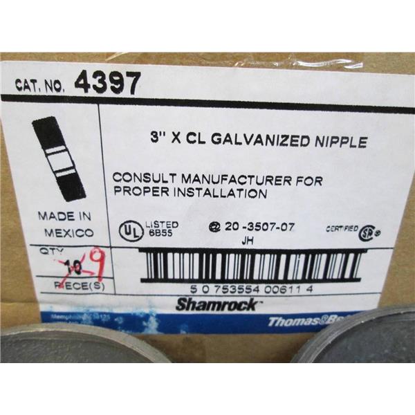 This listing is for a Box of Nine (9) T & B Thomas & Betts 4397 3" x CL Galvanized Nipple **NEW In BoX**