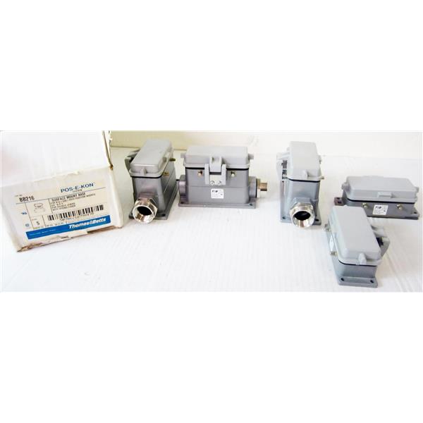 *BOX* THOMAS AND BETTS BB216 SURFACE MOUNT BASES W/FITTINGS - 3 COMPLETE PLUS 2 CAPS - NEW SURPLUS