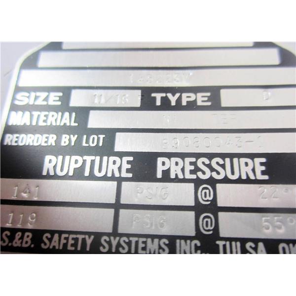 BS&B 145223V 11/16" Rupture Disc 141 PSIG @ 22° F 119 PSIG @ 55° F Ni TEF Type D.