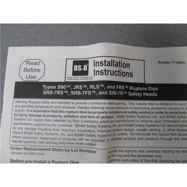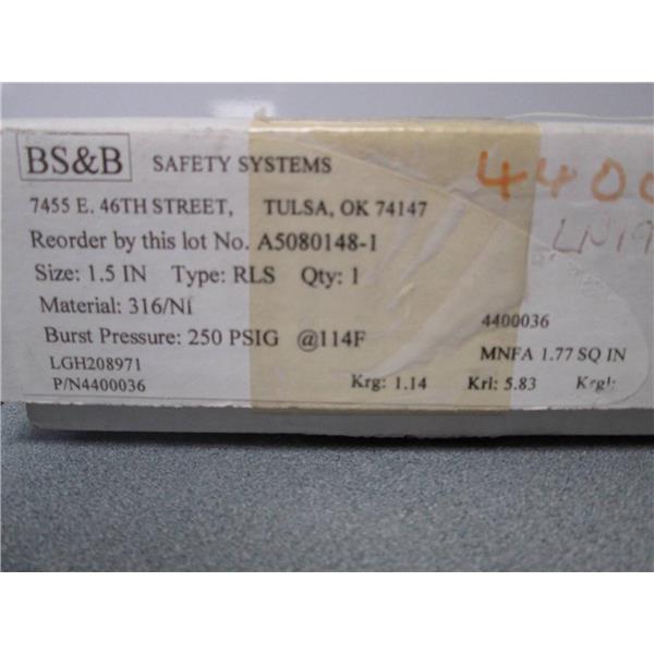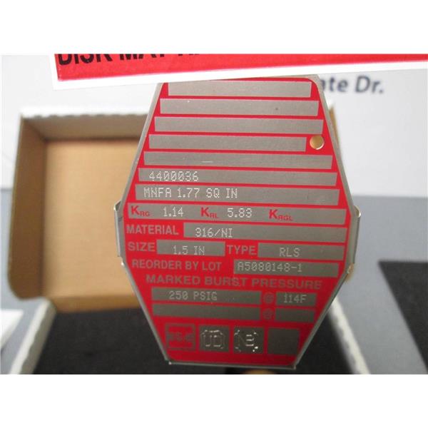 BS&B 1.5" RLS Type Rupture Disk 4400036 250 PSIG @ 114 Degrees F