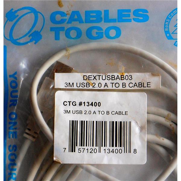 CABLES TO GO C2G 3M USB 2.0 A/B CABLE, #13400, USB TYPE A/B MALE, NEW IN BOX