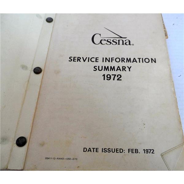 - Description: Cessna Service Information Summary, 1972, Date Issued Feb 1972; Aviation Part / Component; Aircraft / Airplane Part