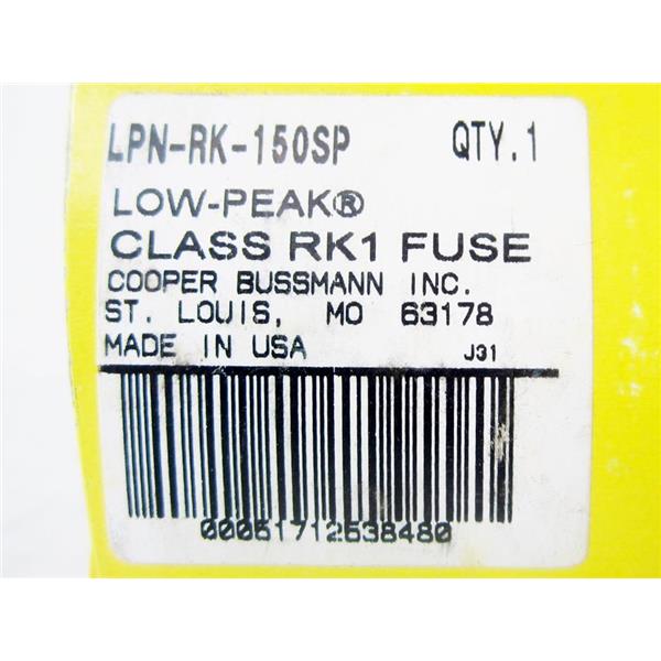 COOPER BUSSMANN BUSS LPN-RK-150SP FUSE, 150A 150 AMP - NEW