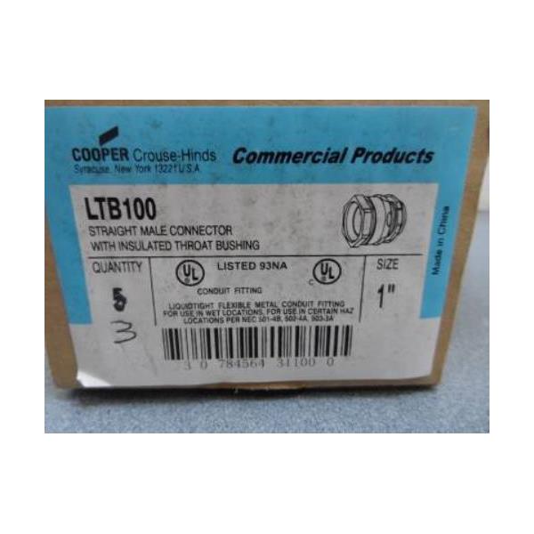Cooper/Crouse-Hinds LTB 100 Straight Male Connectors Liquidtight QTY 3 New