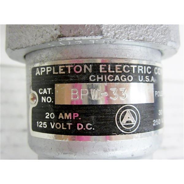 You're reviewing: APPLETON BPW-33 BPW33 ELECTRIC POWER PLUG, 3 POLE 20A 125VDC