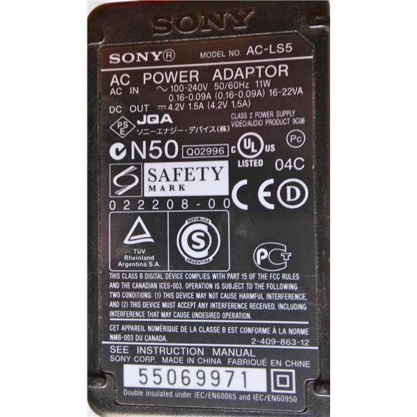 SONY AC-LS5 AC POWER ADAPTER FOR SONY DIGITAL CAMERAS, 100-240V 50/60Hz 11W, USE