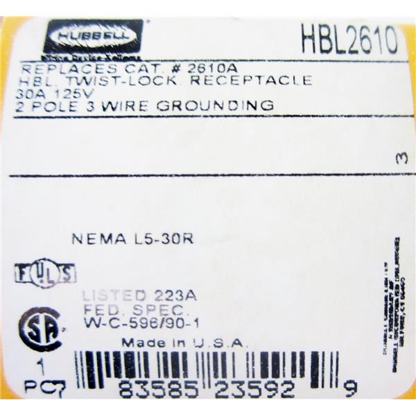 You're reviewing: HUBBELL HBL2610 AC POWER RECEPTACLE OUTLET, NEMA L5-30 L5-30R - NEW