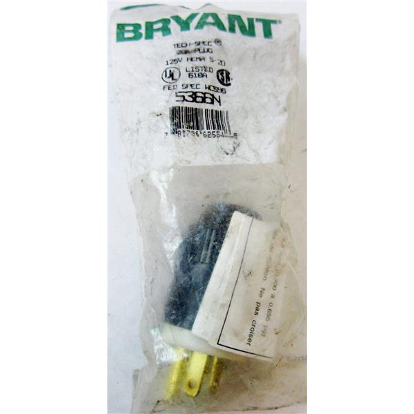 You're reviewing: BRYANT 5366N TECH SPEC STRAIGHT BLADE PLUG, 20A 125V 2P3W, NEMA 5-20P 5-20 - NE
