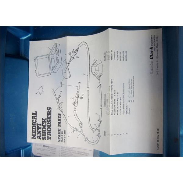 - Description: Blue Plastic Carrying Case; For Mast I, II, and III Anti-Shock Trousers (Pants)