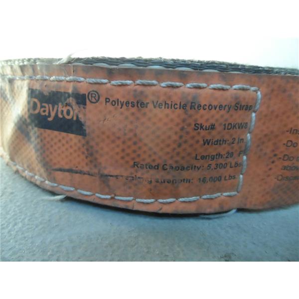 Dayton 1DKW8 Polyester Vehicle Recovery Strap Width 2" Length 20FT Cap. 5300LBS