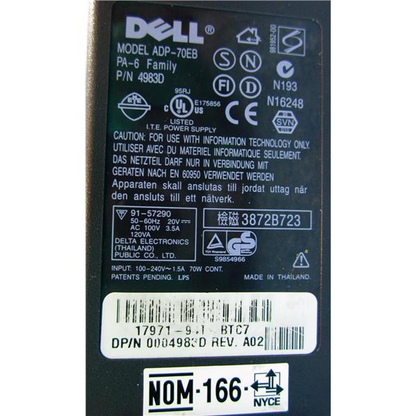 DELL ADP-70EB LAPTOP AC ADAPTER POWER SUPPLY, PA-6 FAMILY, PART # 4983D