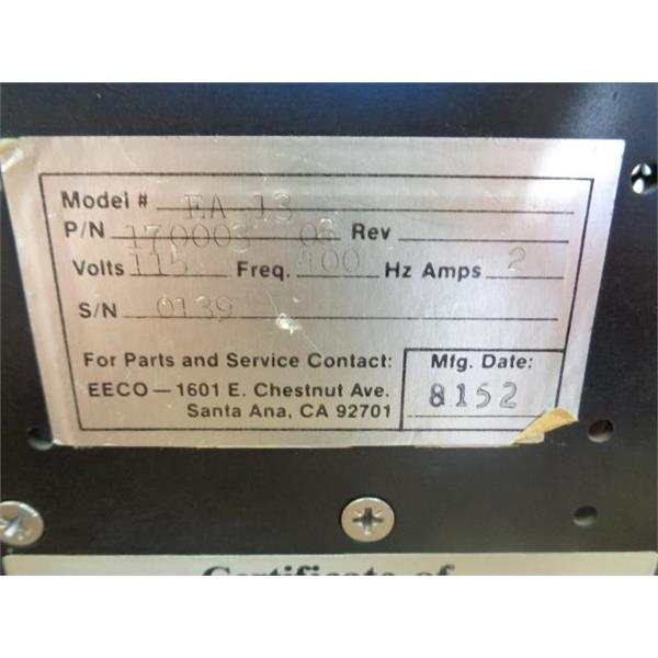 EECO ELECTRONIC ENGINEERING COMPANY 170003 08 MODEL EA-13 PASSENGER ENTERTAINMENT POWER AMPLIFIER, AMP