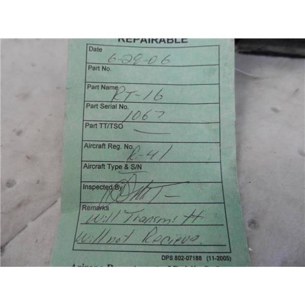 Used but in good condition. I do not have the ability to test this item. The green "Repairable" tag was lost in a warehouse move but it does still have the yellow "Servicable" "Repaired" tag. I took several close ups of the labels and tags and so please check the pictures carefully. It only comes with what is shown in the pictures.