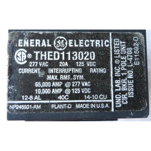 GE GENERAL ELECTRIC THED113020 CIRCUIT BREAKER, THED TYPE, 20A 1POLE 277VAC - USED w/GUARANTEE