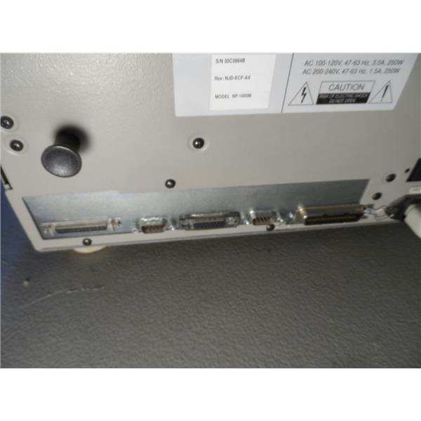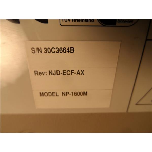 This item was purchased from a large business inventory reduction sale. I do not know the history of it. The back has a label that reads, "Codonics color digital printer model NP-1600M". It is used with normal wear. It powers on, the fan runs, and it goes through initialization. The screen read, "head preheating", "booting", and then "ready". It is difficult to latch the top cover down and it has a small screw attachment point under the lid that is broken (see last picture). The small screw is one of the screws that holds the carriage assembly to the cover. I am not able to test it further. It only comes with what is shown in the pictures.