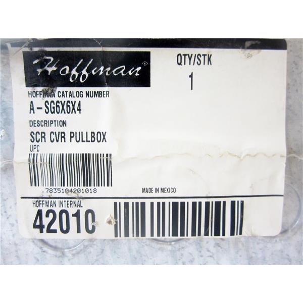 HOFFMAN A-SG6X6X4 PULL BOX, 6" X 6" X 4", SCREW COVER, NEMA 1 - NEW SURPLUS