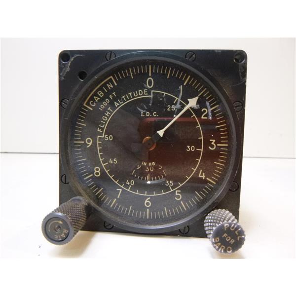 Purchased from an aviation auction. This I.D.C. unit looks clean and is in good cosmetic condition. It is not tagged as to the condition status. The "pull for baro knob" is loose but still turns the arrow hand just fine. I am not able to test it. It only comes with what is shown in the picures.
