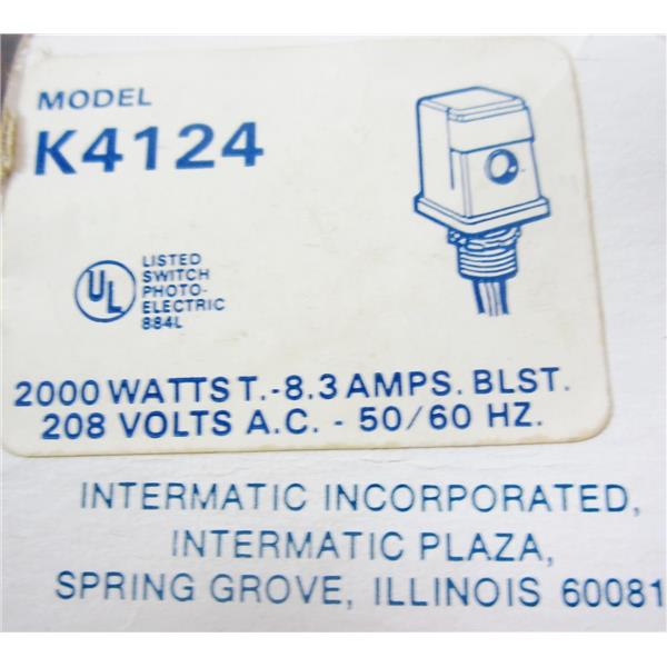 INTERMATIC K4124 208V PHOTOCONTROL PHTOCELL, PHOTO CONTROLL CELL - NEW