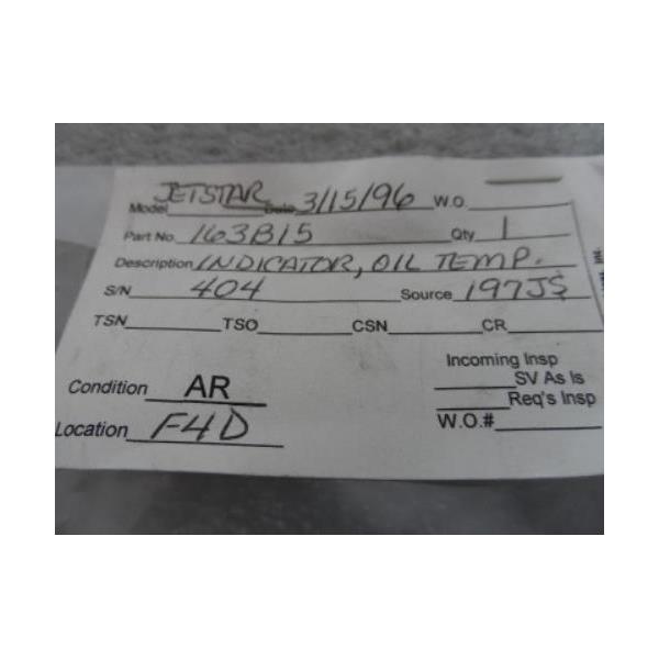 Jetstar P/N 163B15 Oil Temperature Indicator The Lewis Engineering Co. Cond. AR