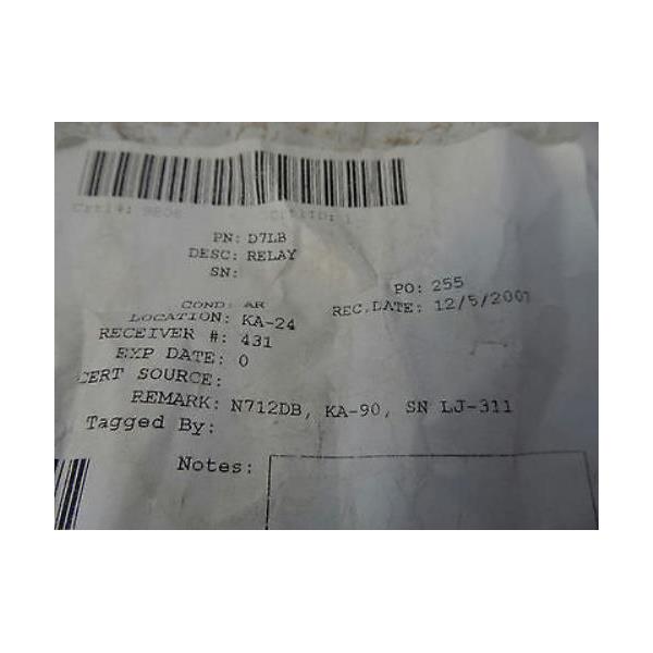 | Condition Description | This item was purchased from an aviation surplus sale. It is in good cosmetic condition. It is tagged "AR", remark "N712DB, KA-90". The packaging is marked in such a way that both of these relays may be from the same aircraft and so you will receive both of them. The label also shows the manufacturer as "Hartman" with the same part number. I am not able to test it.. |