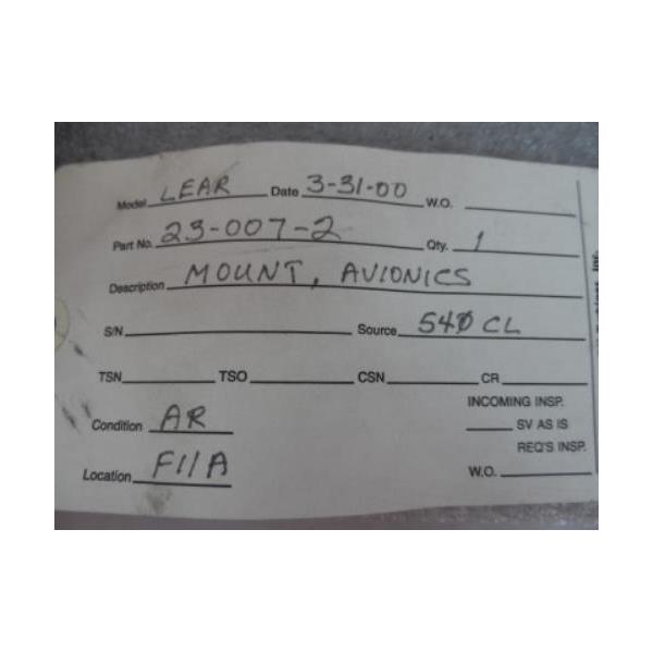 Lear P/N 23-007-2 Mount, Avionics