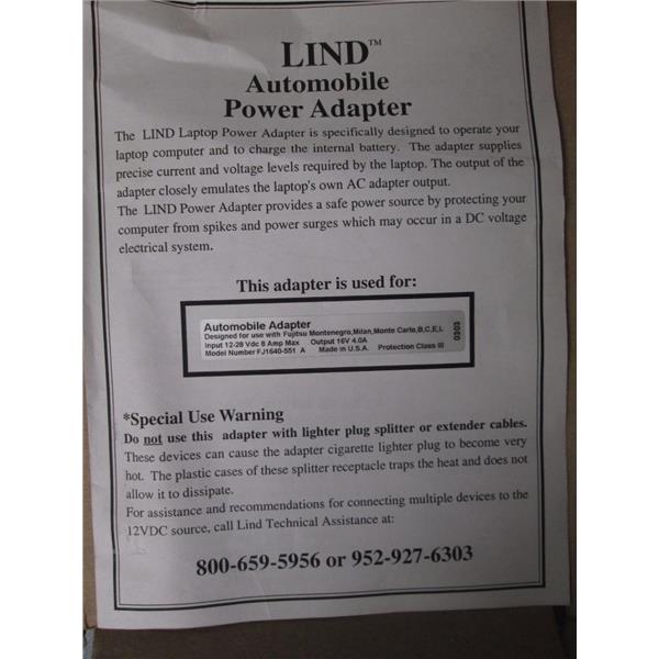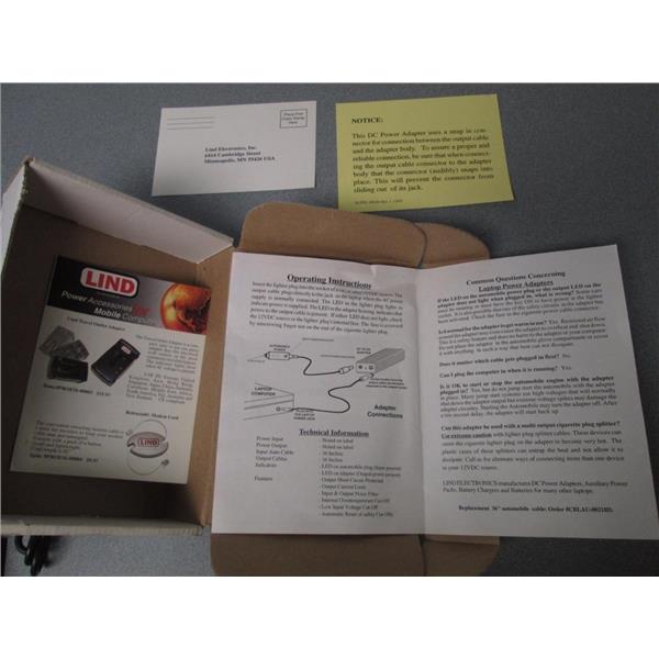 The Lind power adapter provides a safe power source by protecting your computer from spikes and power surges which may occur in a DC voltage electrical system.