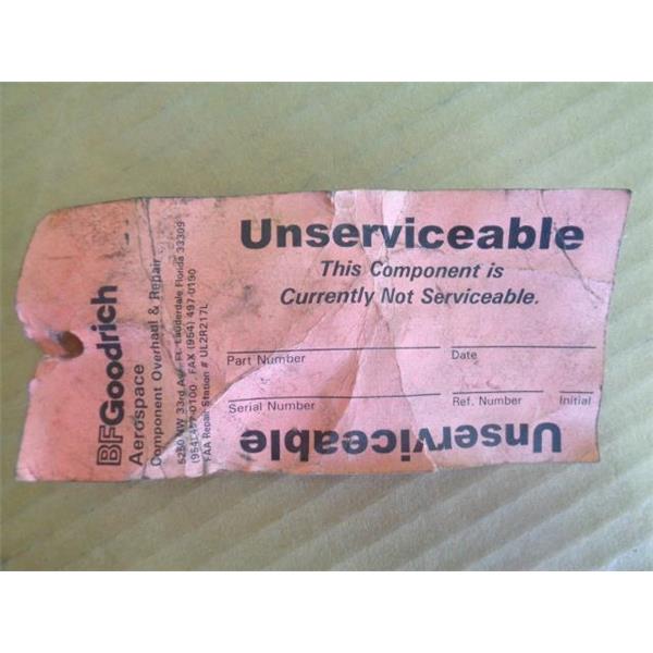 | Condition Description | Tagged " Unserviceable " |