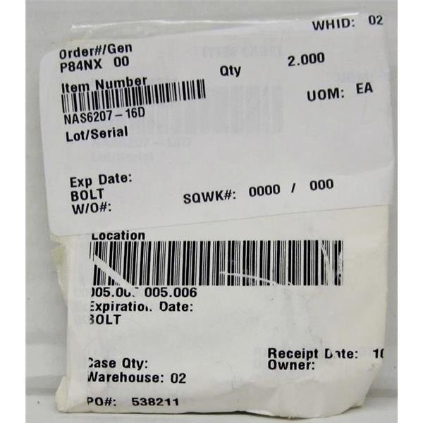 *LOT OF 2* NAS6207-16D BOLTS, AVIATION AIRCRAFT AIRPLANE SPARE SURPLUS PART