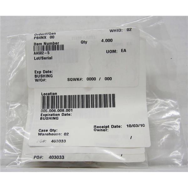 *LOT OF 4* AA502-5 BUSHINGS, AVIATION AIRCRAFT AIRPLANE SPARE SURPLUS PART