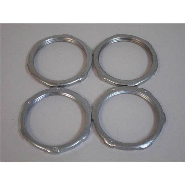 - Description: 3" x 3/8" Malleable Iron Tiger-Grip Locknuts; lot of 4; missing original packaging; new and unused.
