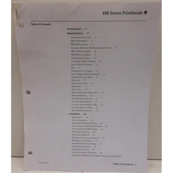 - Description: Manual for HR Series Printheads; Missing Cover (see pics)