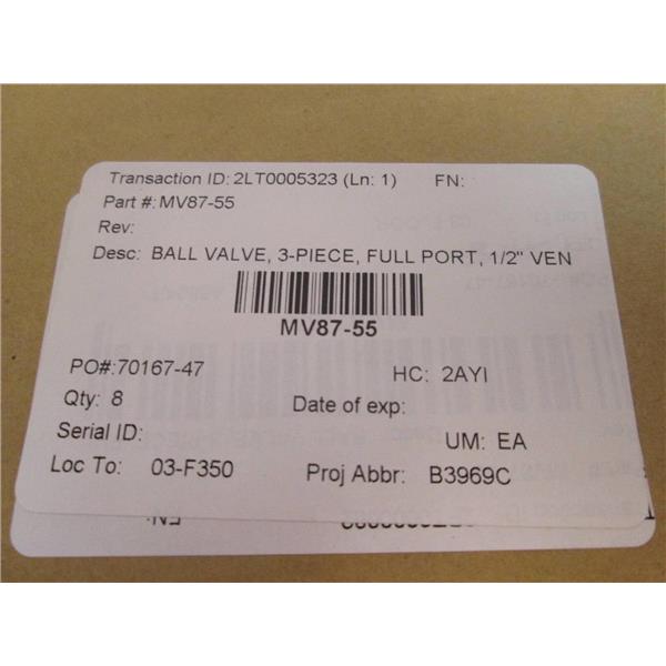 - Description: 1/2" Stainless Steel Sanitary Ball Valve; 3 piece; full port; original packaging (may have minor shelf wear); new and unused; more than one identical item (may not get one pictured).