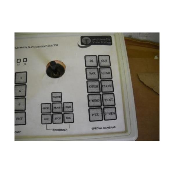 This is a used keyboard with scuffs and normal wear. On the top it is printed: MAX-1000 closed circuit television management system, multimedia view station. On the bottom is a label that reads: DR-530 CCTV keyboard, baud 9600,19.2K. It looks to be from a prison security area. There is a cover over the top that is specific to that use. This looks just like a Honeywell HEGS5300 but I can't find anything on this to verify that. It looks like there is another configuration or layout under the cover. I have not tried to remove the top cover. I am not able to test this unit. It has a serial type connector. It only comes with what is shown in the pictures.