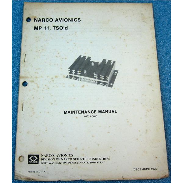 - Description: 03738-0600 Maintenance Manual for Narco Avionics MP 11, TSO'd
