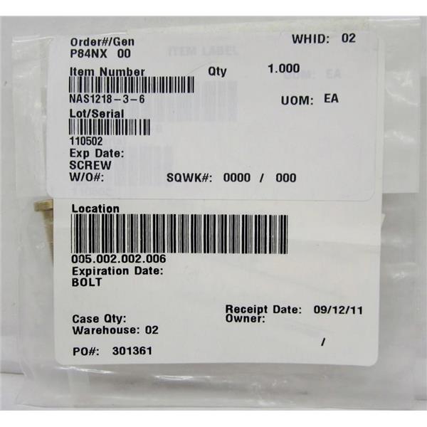 NAS1218-3-6 SCREW, AVIATION AIRCRAFT AIRPLANE SPARE SURPLUS PART