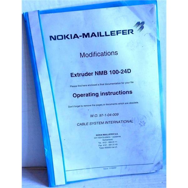 NOKIA-MAILLEFER EXTRUDER NMB 100-24D OPERATING INSTRUCTIONS, W.O. 97-1-04-009, CABLE SYSTEMS INTERNATIONAL