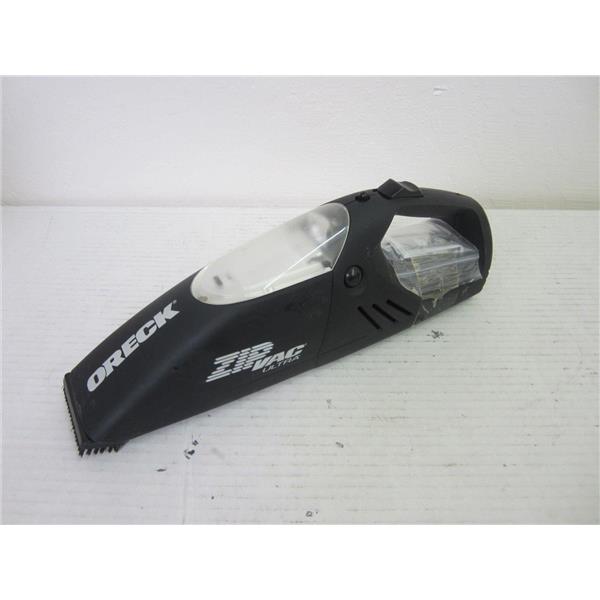 ORECK ZIP100B AUTOMOTIVE CORDLDESS VACUUM CLEANER, BATTERY POWERED, MISSING CHARGER
