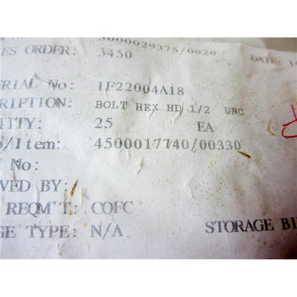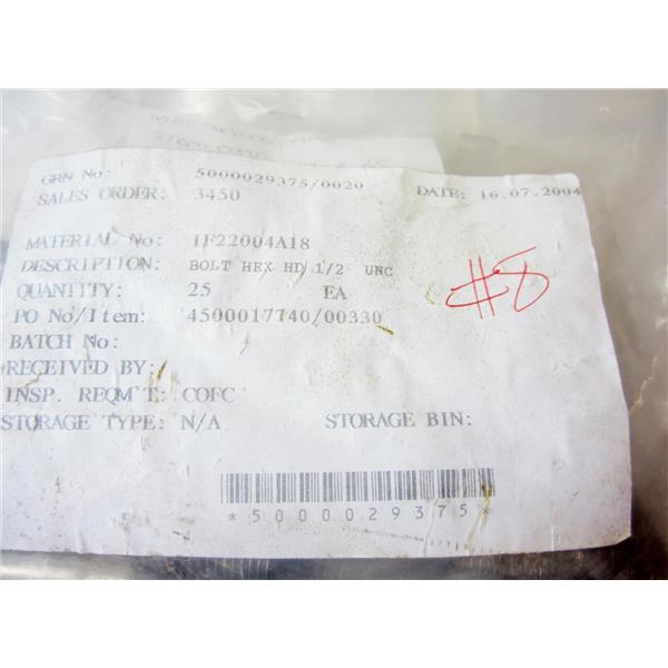 *PACK OF 25* HEX BOLTS, HD, 1/2" UNC, HALF INCH, COARSE THREADS - NEW